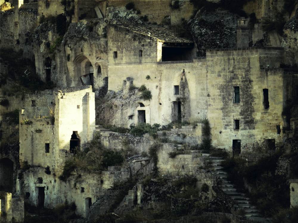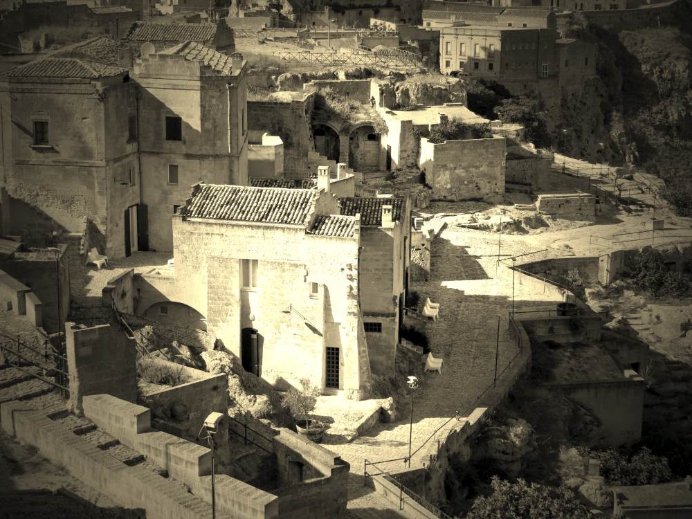 Sassi Matera is an ancient human settlement . The chatacteristics of this area are the houses dug into the stone hillside. Narrow pathways create a labyrinth which cuts through the village.